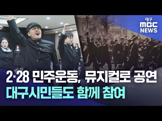 1960년 이승만 독재정권을 무너뜨린 4·19혁명의 도화선이 된 2·28민주운동이 뮤지컬 작품으로 무대에 오른다는데, 특히 이번 공연에는 대구에 살고 있는 시민 40여 명이 자발적으로 참여해 의미를 더하고 있다고 해요.2·28민주운동 기념사업회 박영석 회장, "2·28민주운동이 역사적 사실로만 남아있는 것이 아니고 우리 시...