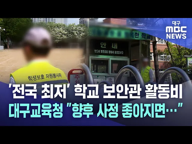 ◀앵커▶학교의 안전을 지키는 학교 보안관 신분이 자원봉사자로 되어 있어 최저임금도 받지 못하고 있다는 보도 지난 4월에 해드렸습니다.전국 교육청 가운데 대구가 가장 열악한 상황이라고 합니다. 사정이 이런데도 대구시교육청은 2024년에도 학교 보안관 활동비 인상은 불가능하다는 입장이어서 처우 개선 의지가 없다는...
