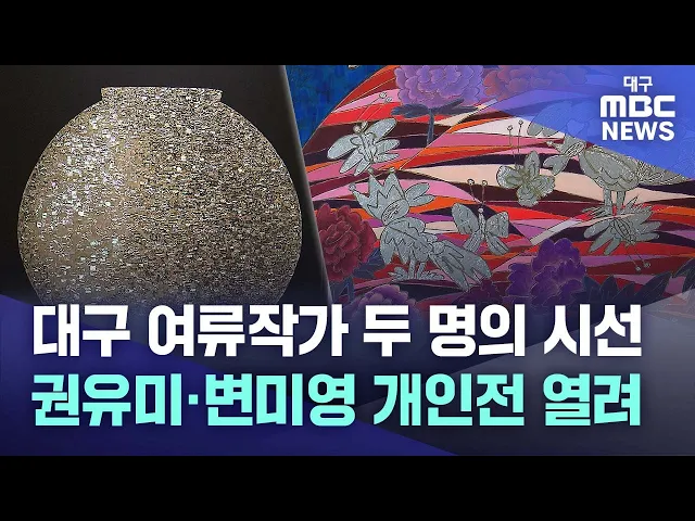 ◀앵커▶대구에서 오랫동안 활발하게 작품 활동을 하고 있는 중견 여류작가 2명의 전시회가 열리고 있습니다.자신만의 독특한 화풍으로 독자적인 작품 세계를 구축하고 새로운 도전을 추구해 온 작가들을 이상원 기자가 소개합니다. ◀기자▶빛에 따라 여러 색을 발하는 금박과 자개로 구성된 달항아리 '상원'.빛에 의해 생기는...