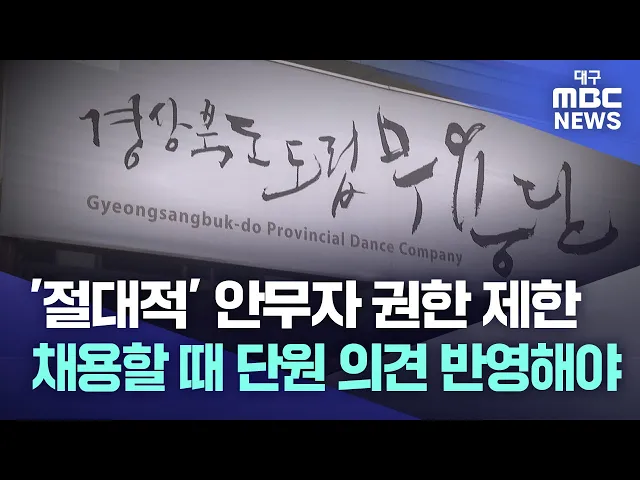◀앵커▶경북도립무용단 안무자의 불공정한 운영 논란과 직장 내 괴롭힘 문제를 보도해 드렸는데요.안무자에게 권한이 과도하게 집중된 구조적 문제와 평정 시험 제도의 개선이 필요하다는 지적을 받습니다.다른 지자체에서는 이런 문제점들을 보완하는 제도를 도입해 시행하고 있습니다. 이상원 기자가 보도합니다.◀기자▶경...