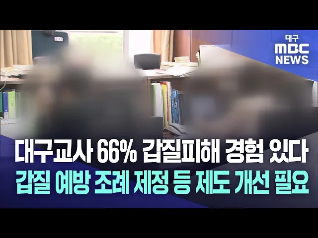 대구지역 교사 3명 중 2명이 교장, 교감으로부터 갑질을 당한 경험이 있다는 설문조사 결과가 발표돼 충격을 주고 있는데요, 그런데 경북 등 전국 10개 광역교육청에는 교사 보호를 위한 조례가 있지만 대구에는 없다지 뭡니까요!이보미 대구 교사노조위원장 "교사를 보호하면서 갑질 피해를 근절할 수 있는 조례가 대구교...