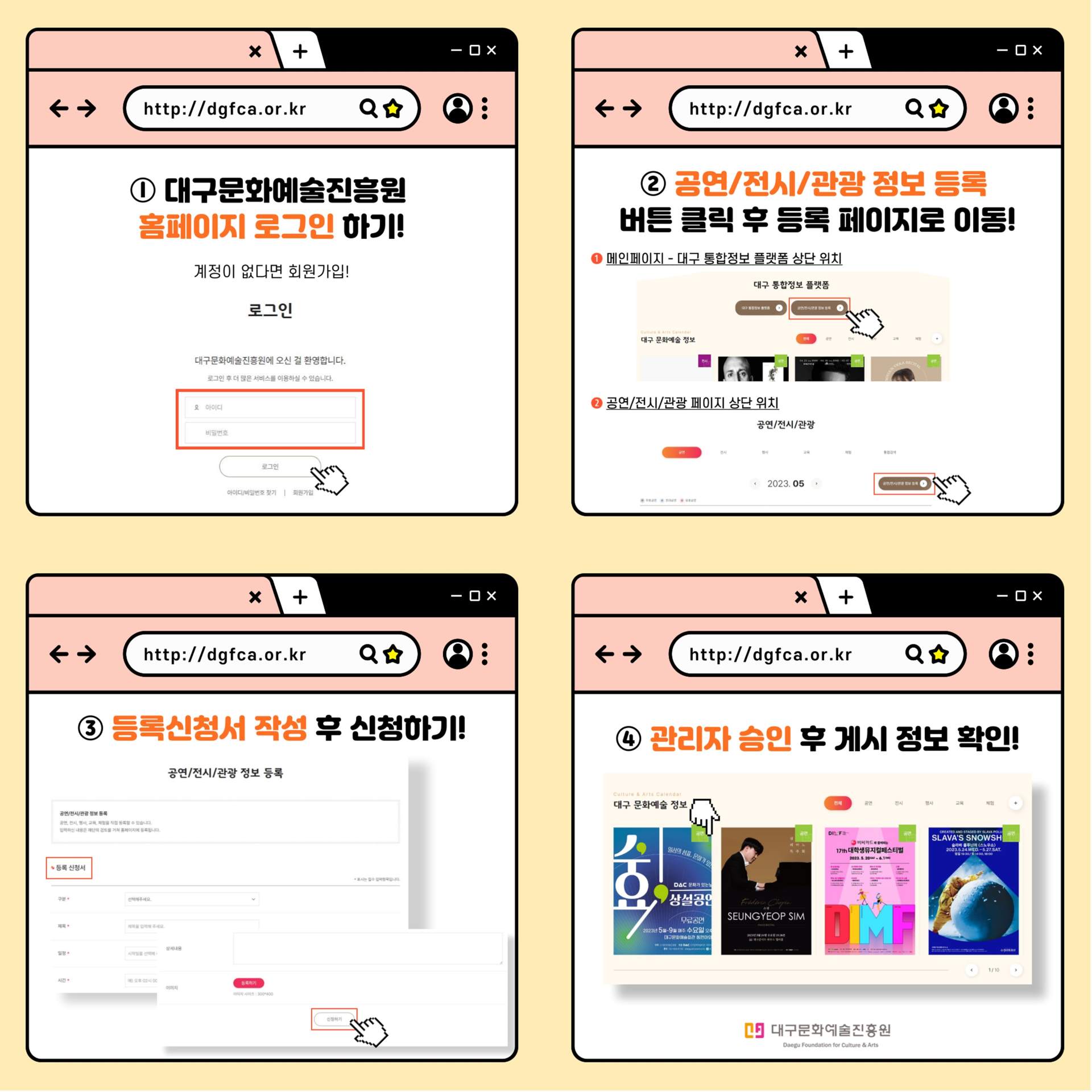 대구문화예술진흥원이 대구의 공연, 전시, 관광 정보를 쉽게 찾아볼 수 있는 '대구 문화예술관광 통합정보 플랫폼'을 구축했습니다.분산되어 있던 공공기관별 문화, 관광 홈페이지, 민간 예매 사이트 등 관련 정보를 집약시켜 날짜별, 지역별, 키워드별로 정보를 검색하고 등록할 수 있도록 했습니다.각종 공연, 전시, 교육...