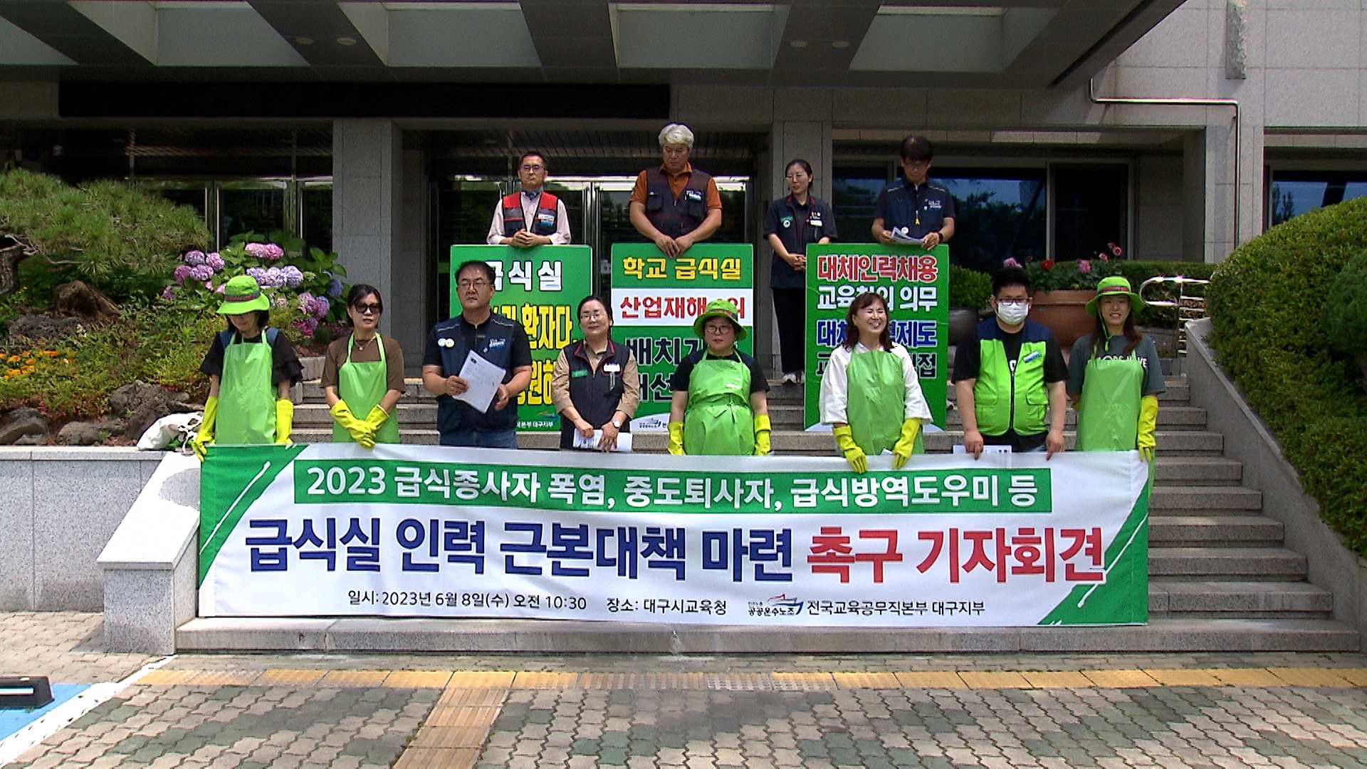 민주노총 전국교육공무직본부 대구지부는 6월 8일 대구시 교육청 앞에서 기자회견을 열고 학교 급식실 종사자 인력 충원 근본 대책 마련을 촉구했습니다.여름철을 맞아 온열질환이 많이 발생하는 학교 급식실의 특성을 고려해 고열 요리 자제, 냉방 용품과 음료 제공, 휴식 시간 확대 보장 등 폭염 대책과 업무 경감 대책을...