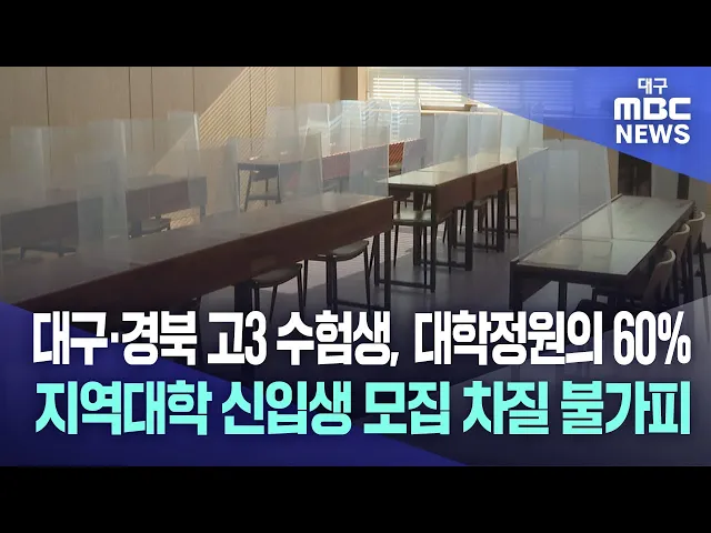 2023년 대구·경북의 고3 수험생이 지역대학 정원의 60%에 불과하다고 하는데, 재수 예상 인원을 보태도 대학 정원보다 14,000여 명이나 부족해, 2023년에도 지역 대학의 신입생 모집에 차질이 불가피할 것이란 우려의 목소리가 나오고 있다지 뭡니까요?대구에 있는 입시학원 차상로 진학실장은, "학령인구 감소로 인한 입학...