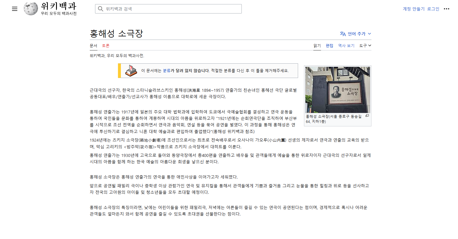 '근대극 선구자' 홍해성 소극장, 서울 대학로에 개관
