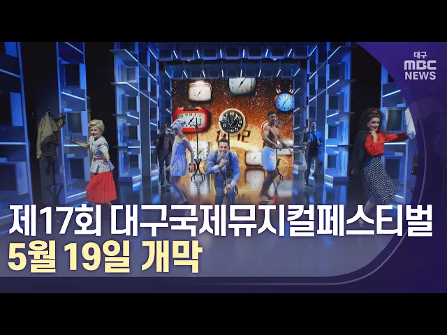 ◀앵커▶국내 유일한 뮤지컬 분야 글로벌 축제인 제17회 대구 국제 뮤지컬 페스티벌이 5월 19일 저녁 코오롱음악당 개막 축하공연을 시작으로 막을 올립니다.화제를 모으는 세계적 작품은 물론이고 공연장 안팎을 채울 부대행사도 많다고 합니다.보도에 이상원 기자입니다.◀기자▶대구오페라하우스에서 개막작 '나인 투 파이브...
