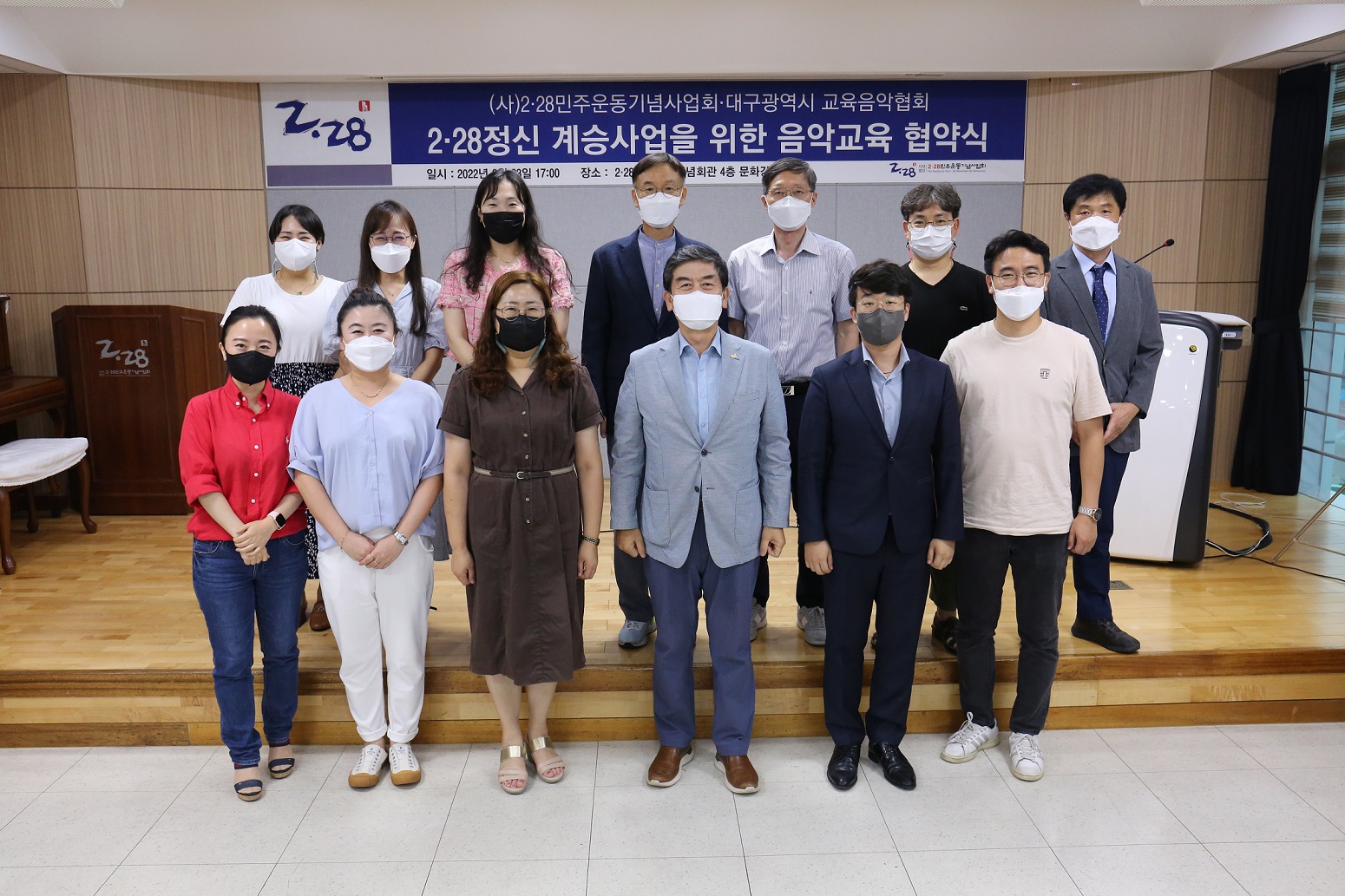 2.28 민주운동기념사업회는 대구지역 음악 교사들로 구성된 대구교육 음악협회와 2.28 찬가와 2.28 행진곡 보급사업을 함께 추진하는 내용의 협약을 맺었습니다.협약에 따라 2.28민주운동기념사업회는 대구지역 음악 교사들에게 4차례에 걸쳐 교육 오리엔테이션을 실시하고 2.28 음악교육 자료를 제공하는 등 교육연수 프로...