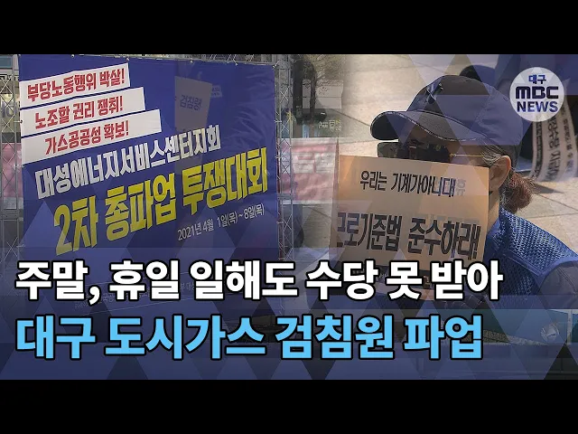 ◀ANC▶대구 도시가스 검침원들이 지난달에 이어 2차 파업을 하고 있습니다.과도한 업무량 때문에 연장근무, 휴일 근무가 많지만 수당을 받은 적은 한 번도 없다고 합니다.이상원 기자가 보도합니다. ◀END▶ ◀VCR▶대구 도시가스 검침원인대성에너지서비스센터 직원 240명이 지난 1일부터 2차 파업에 들어갔습니다.저...