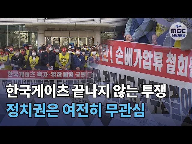 ◀ANC▶흑자 폐업에 반발하다 해고 당한대구 달성공단 한국게이츠 노동자들이지난 2일 시작한 대구 전역 도보 투쟁을 오늘 마무리했습니다.노동자들은 대구시민들의 성원과 관심에서 희망을 보았다며 힘들지만 흔들림 없이투쟁을 이어나가겠다고 밝혔습니다.이상원 기자가 보도합니다. ◀END▶ ◀VCR▶해고 당한 한국게...