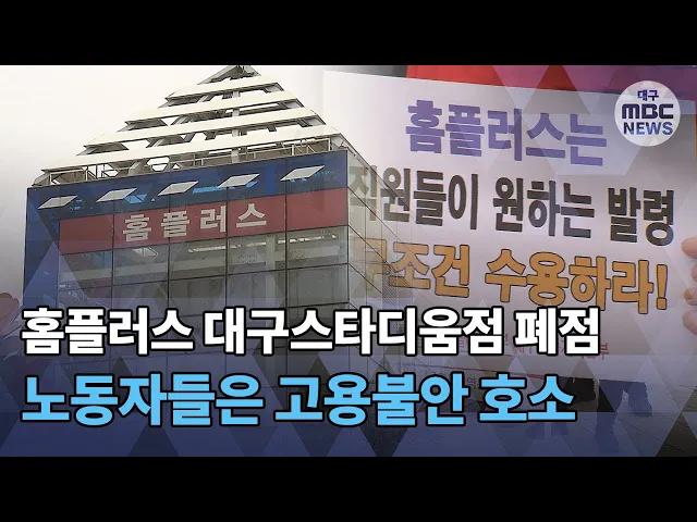 ◀ANC▶대형마트 홈플러스가 경영 악화를 이유로 대구점에 이어대구스타디움점도 폐점하기로 했습니다.매장에서 일하는 노동자들을 다른 점포로 배치하겠다고 하지만당사자들은 고용 불안을 호소하고 있는데요.발령 대상 점포 중에는왕복 100킬로미터가 넘는 곳도 있어서 현실적으로 근무가 어렵다는 겁니다.보도에 이상...