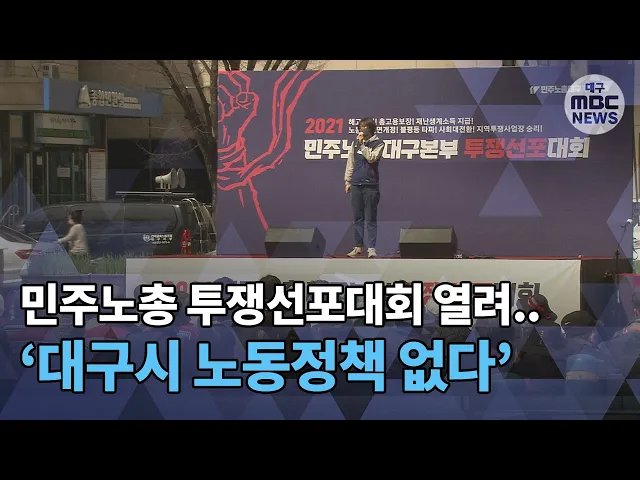 ◀ANC▶코로나19 여파가 장기화하면서사회 불평등과 양극화 문제 등대구지역 노동환경이 갈수록 악화하고 있는데요.하지만 대구시는 아무 대책도내놓지 않고 있어 노동계가 강도 높은투쟁을 선언했습니다.이상원 기자가 보도합니다. ◀END▶ ◀VCR▶지난 15일 대구 모 초등학교 돌봄전담사가숨졌습니다.혼자 돌봐야 할 ...