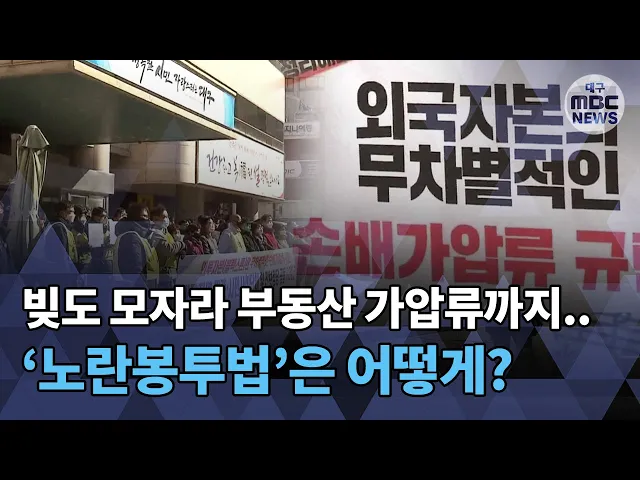 ◀ANC▶흑자폐업에 반발하며 투쟁하는대구 달성공단 한국게이츠 노동자들이명절을 앞두고 거액의 빚을 떠안는 것도 모자라부동산이 압류될 처지에 놓였습니다.사측이 노동자들이 청산 작업을 방해한다며거액의 손해배상 청구와 함께부동산 가압류를 신청했는데, 법원이 받아들였습니다. 이상원 기자가 보도합니다. ◀EN...