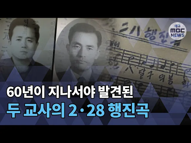 ◀ANC▶지난 1960년 부패한 자유당 독재정권에 맞서 대구시민들이 항거한 '2·28민주운동'이 올해로 61주년을 맞습니다.당시 불의에 항거한 시민정신을 담은 노래 '2·28 행진곡'이 만들어졌는데요.60년 가까이 제대로 알려지지 못하고묻혀 있었던 노래 악보가 이번에 발굴됐습니다.이상원 기자가 보도합니다. ◀END▶ ◀V...