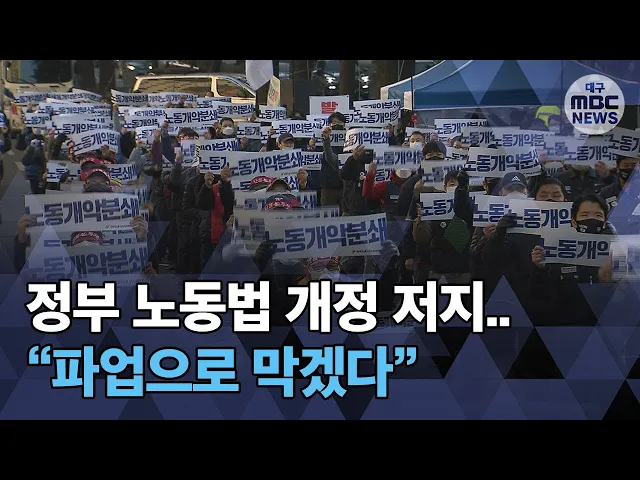 ◀ANC▶ 정부와 여당이 추진하는 노조법 개정안에 대한 노동계의 반발이 거세지고 있습니다. 민주노총에 이어 한국노총도 정부와 여당의 노조법 개정안을 '개악안'으로 규정하고 법안 폐기를 위한 총력 투쟁을 선포했습니다. 이상원 기자가 보도합니다. ◀END▶ ◀VCR▶ 한국노총 대구·경북지역본부는 정부가 노조법 개...