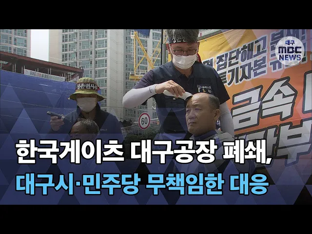 ◀ANC▶노동자와 협의 없이 일방적으로 공장 폐쇄를 결정한대구 달성공단의 한국게이츠 대구공장 소식 지난주에 전해드렸는데요.그런데 문제가 발생한 지 열흘이 넘어가는데도 대구시와 집권여당인 민주당은별다른 대책을 내놓지 못한 채 무책임한 모습만 보이고 있습니다.이상원 기자가 보도합니다. ◀END▶ ◀VCR▶미...