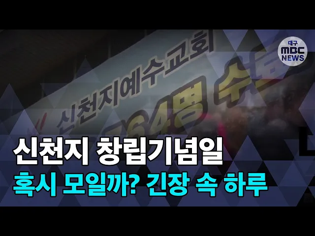◀ANC▶대구는 오늘 하루를 긴장 속에서 보냈습니다.이틀 전 신천지 대구교회 교인 5천 600명이자가격리에서 해제된 상황에서 맞는신천지 교회 창립기념일이기 때문입니다.이상원 기자가 보도합니다. ◀END▶ ◀VCR▶대구 신천지교회 관련 시설을대구 남구청 공무원들이 둘러보고 있습니다.폐쇄조치가 된 시설에 혹시 ...