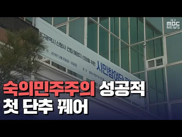 ◀ANC▶ 대구시청 신청사 입지를 결정하는 데는 시민들이 직접 참여해 결정하는 숙의민주주의 방식이 도입됐습니다. 여] 시민들이 중요정책을 공부하고 토론해 스스로 결정을 내리는 방식인데 성공적이었다는 평가이지만 신중하게 고려해야 할 부분도 있습니다. 이상원 기자가 보도합니다. ◀END▶ ◀VCR▶ 250만 대구시...