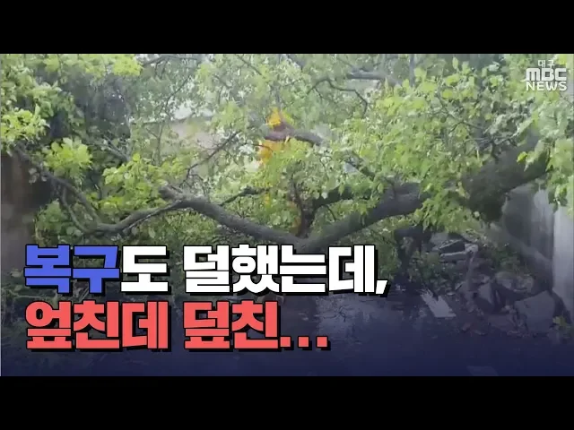 ◀ANC▶ 열흘 전에도 태풍 '타파'가 지나가면서 가을 수확기를 앞두고 농작물 피해가 컸습니다. 피해복구가 채 되기도 전에 태풍 '미탁'이 다시 오면서 농가에는 비상이 걸렸습니다. 계속해서 이상원 기자가 보도합니다. ◀END▶ ◀VCR▶ 영천시 화남면의 이 사과 농장은 태풍 '타파'때 20~40% 낙과 피해를 입었습니다. ...