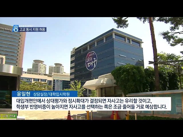교육부가, 자율형사립고, 외국어고, 국제고에 지원하는 학생들은 올해부터 일반고에도 동시지원할 수 있도록 결정했는데요. 이렇게 한 이유는 헌법재판소가 고교평준화지역 자사고 지원자의 일반고 이중 지원을 금지하는 법령의 효력을 정지하는 가처분 결정을 내린 데 따른 거라지 뭡니까. 자율형사립고인 대건고등학교 이...
