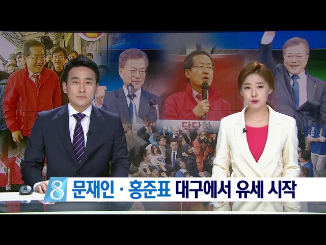 제19대 대선 선거운동 첫날인 오늘, 문재인, 홍준표 후보가 대구에서 첫 유세를 시작하며 대구경북 표심잡기에 나섰습니다. 더불어민주당 문재인 후보는 오늘 오전 대구 2,28 기념탑을 참배한 뒤 성서공단을 방문해 일자리 창출 100일 플랜을 발표하고 경북대 북문에서 첫 거리유세를 했습니다. 자유한국당 홍준표 후보도 ...