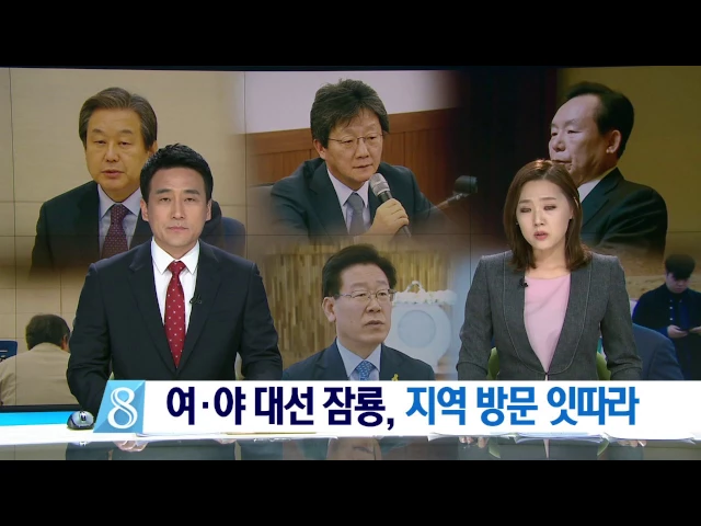 · ◀ANC▶ 내년 대통형 선거에 출마가 유력시되는 여·야 후보들이 잇따라 지역을 방문하고 있습니다. 이들은 최순실 국정농단 사태로 혼란스러운 정국에 대한 해법을 제시하며 자신의 존재감을 알리는데 주력하고 있습니다. 이상원 기자가 보도합니다. ◀END▶ ◀VCR▶ 유승민 새누리당 전 원내대표는 대구에서 기자간담...