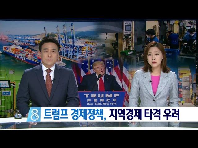 ◀ANC▶ 트럼프가 당초 예상을 뒤엎는 이변을 일으키며 미국 대통령에 당선되면서 전세계가 큰 충격을 받고 있는데요. 우리나라에도 경제,안보 등 많은 분야가 트럼프 당선에 따른 영향을 받을 것으로 예상되고 있고, 대구경북지역도 예외는 아닙니다. 취재기자와 자세한 내용 알아봅니다. 이상원 기자? 우선 경제분야를 ...