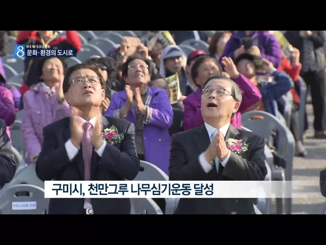 ◀ANC▶ 남] 구미에서는 '한책 하나구미 운동'과 '천만그루 나무심기운동' 등 시민들이 함께 동참하는 여러 운동이 펼쳐지고 있습니다. 여] 산업도시라는 이미지가 강한 구미의 도시브랜드가 문화·환경의 도시로 바뀌는 긍정적인 성과가 나타나고 있습니다. 계속해서 이상원 기자가 보도합니다. ◀END▶ ◀VCR▶ 구미 시...