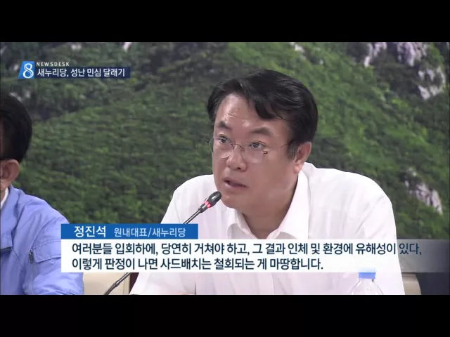 ◀ANC▶ 새누리당 정진석 원내대표를 비롯한 지도부가 오늘 성주를 찾았습니다. 일방적인 사드 배치 결정에 사활을 걸고 반대하고 있는 민심을 달래기 위해서입니다. 여]정부와의 대화창구를 만들고 환경영향평가도 약속했지만 성난 민심을 되돌리기에는 역부족이었습니다. 사드 배치 결정 이전에 이같은 노력이 왜 없었는...
