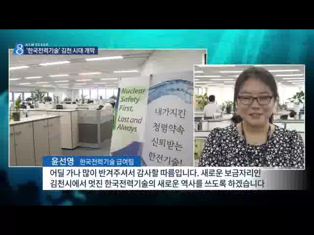김천 혁신도시로 이전하는 공공기관 가운데 가장 규모가 큰 한국전력기술이 어제 입주식을 갖고 업무를 시작했는데요, 지속적인 인구 감소와 경제위축으로 힘들어하던 김천지역에 새로운 활력소가 될 것이란 기대감이 큰데요, 박구원 한국전력기술 사장(경상남도 말씨) "지역 발전을 위해 지역의 젊은 청년, 일꾼들을 저희...