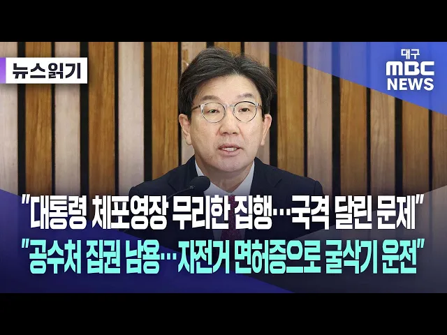 권성동 국민의힘 원내대표는 공수처를 향해 "무리한 현직 대통령 체포 시도를 자제하라"고 요구했습니다. 권 원내대표는 1월 3일 국회에서 열린 원내 대책 회의에서 "지금 이 시각 공수처가 대통령 체포영장 집행을 무리하게 시도하는 것은 우려스럽다"라며 "이는 대한민국의 국격이 달린 문제"라고 밝혔습니다. 이어 "대통...