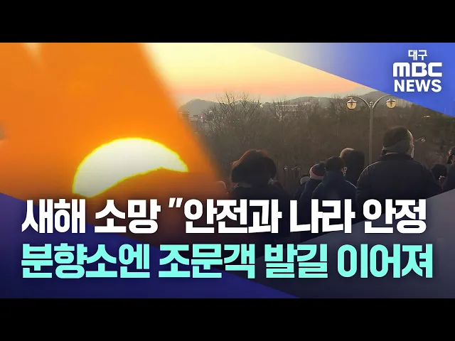 ◀앵커▶새해 첫날도 제주항공 여객기 참사 대구 합동 분향소에는 추모객들의 발길이 이어졌습니다. 2025년 첫날을 맞은 시민들은 새해 소망으로 안전한 사회, 국정 안정을 꼽는 분이 많았습니다. 권윤수 기자가 취재했습니다.◀기자▶새해 첫날에도 여객기 참사 희생자를 추모하는 발길이 이어졌습니다. 대구 합동 분향소가 마...