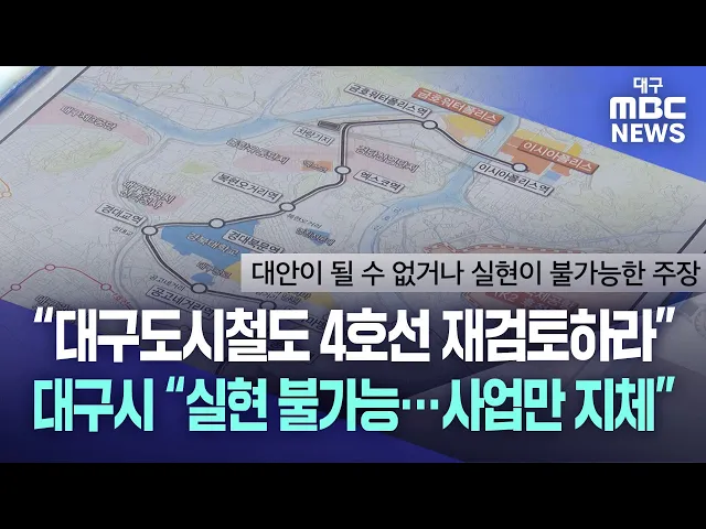 ◀ 리포트 ▶대구시는 오는 2030년 개통을 목표로 대구도시철도 4호선을 추진하고 있습니다.철제 차륜 방식 이른바 AGT 경전철로 4호선을 만들기로 했는데요.그런데, 최근 정치권에서 다른 방식인 모노레일이나 지하화로 다시 검토해달라는 요구가 나왔습니다. 논란이 재점화될 조짐이 보이자 대구시는 실현이 불가능한 주장...