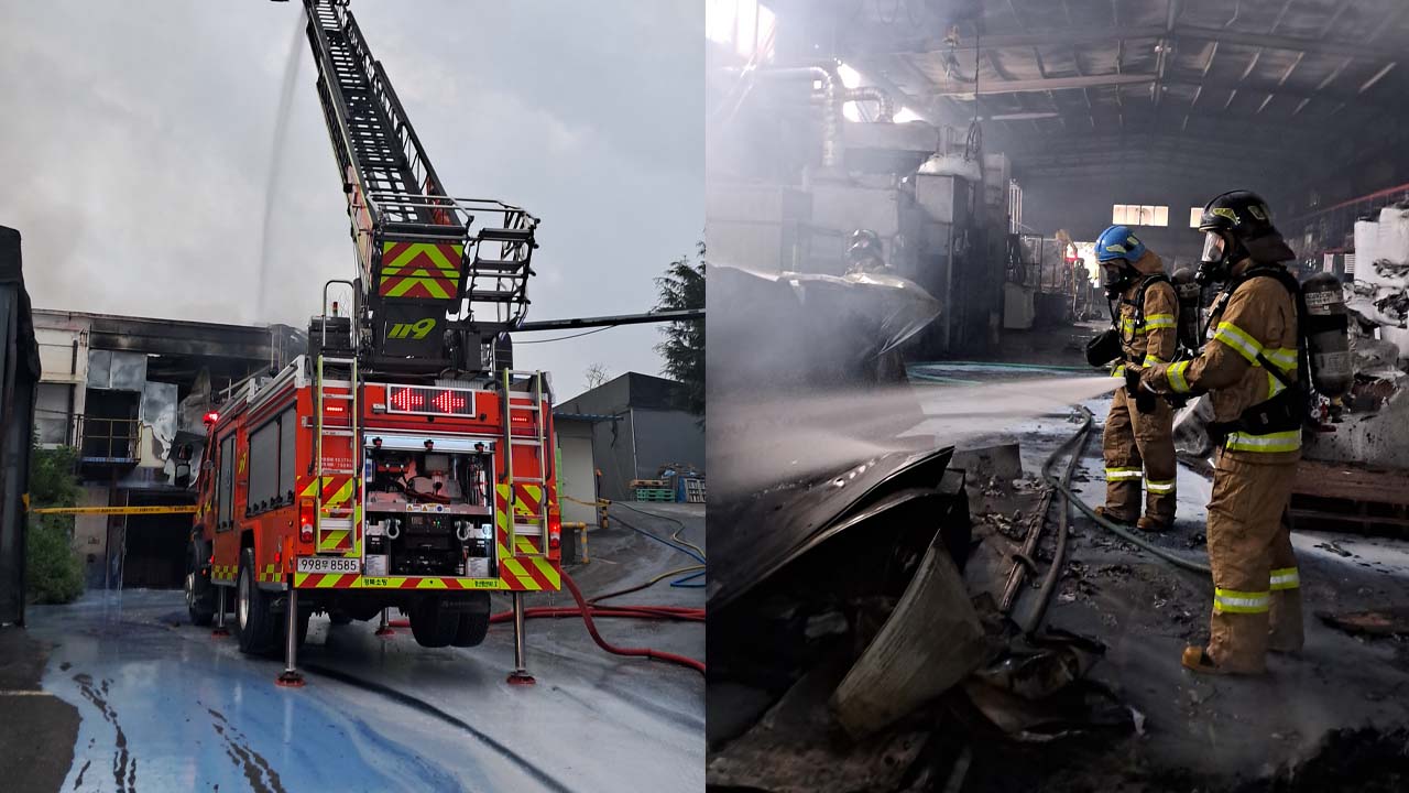 경북 경산의 지붕 외장재 제조 공장에서 불···1억 1,300여만 원 피해