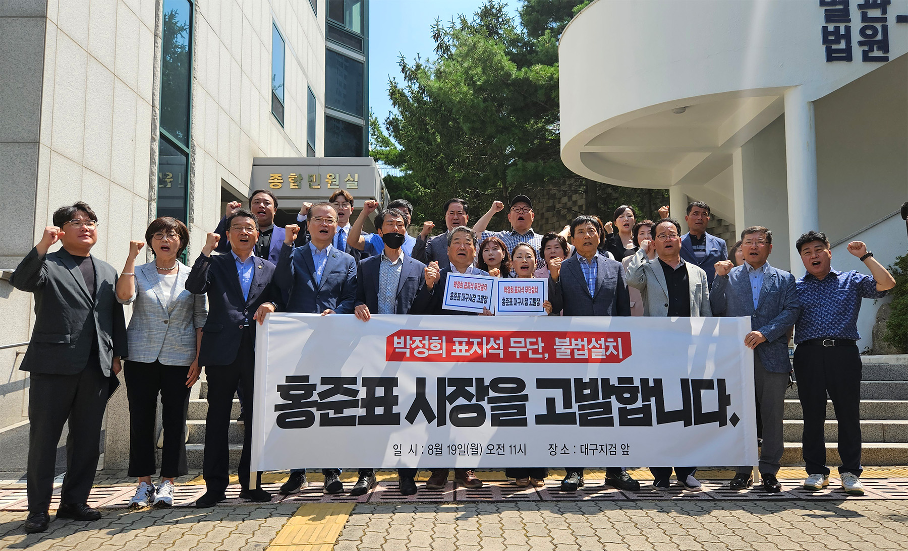 사진 제공 더불어민주당 대구시당더불어민주당 대구시당은 대구시가 동대구역 광장에 '박정희 광장' 표지석을 설치한 것과 관련해 8월 19일 홍준표 대구시장을 국유재산법 위반 혐의로 검찰에 고발했습니다. 허소 민주당 대구시당 위원장을 비롯해 이승천 동구군위군을 지역위원장 등 8명은 "동대구역 부지는 국토교통부 소...