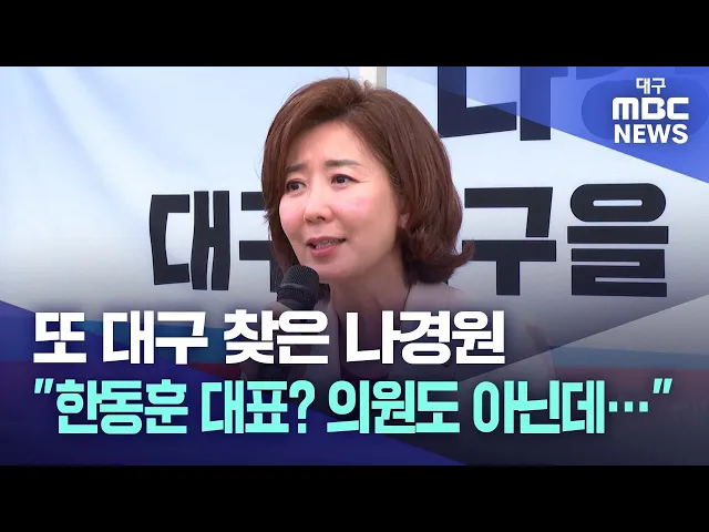 ◀앵커▶대구가 국민의힘 당권 주자들의 잇단 방문으로 날씨 만큼이나 뜨겁게 달아오르고 있습니다.어제 한동훈 후보에 이어 오늘은 나경원 국회의원이 대구를 찾았습니다.나 의원은 한 후보를 견제하는 발언을 오늘도 이어갔고, 원희룡 전 장관과의 단일화에 대해선 선을 그었습니다. 보도에 권윤수 기자입니다.◀기자▶국민의...