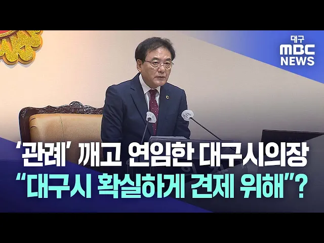 ◀앵커▶대구시의회 후반기 의장을 뽑는 선거가 6월 25일 치러졌습니다. 이만규 현 의장과 김대현 의원이 맞붙었는데, 현 의장이 승리해 후반기에 연임하게 됐습니다.1991년 대구시의회가 개원한 이후 의장이 연임하지 않는 관례가 처음으로 깨졌습니다. 권윤수 기자입니다.◀기자▶제9대 대구시의회의 남은 임기 2년, 후반기를...