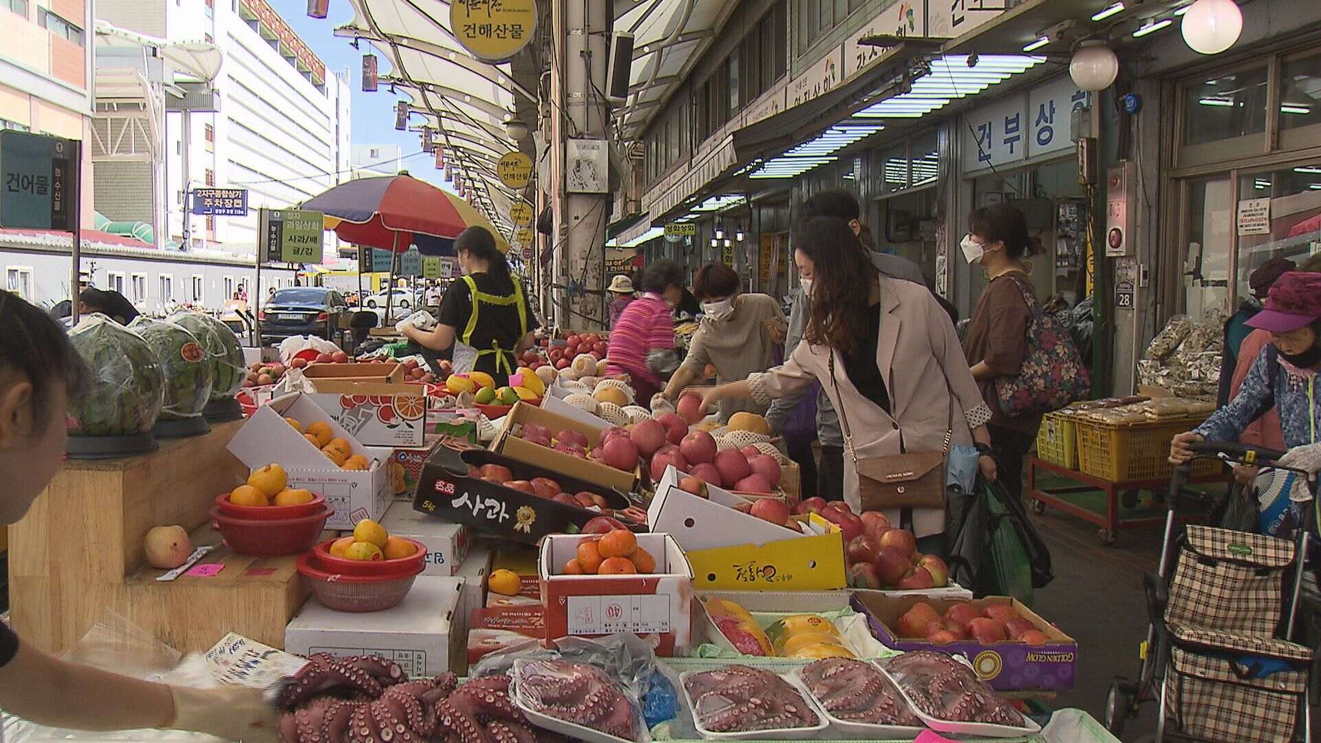 추석을 하루 앞둔 10월 5일 대구·경북 주요 전통시장은 막바지 성수품을 마련한 사람들로 북적였습니다. 대구 서문시장과 칠성시장 등 주요 전통시장은 5일 이른 아침부터 생선과 과일, 건어물, 나물 등 음식을 장만하려는 손님들로 많이 붐볐습니다. 대형마트와 백화점 등지로도 성수품이나 추석 선물을 사려는 사람들이 ...