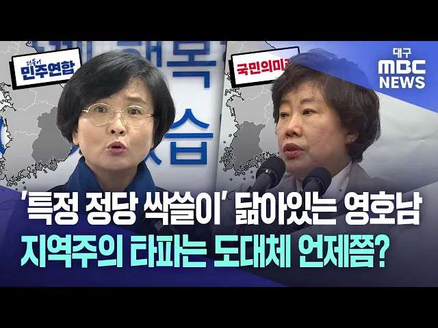 ◀앵커▶22대 총선에서 더불어민주당은 대구·경북 지역구 당선인을 한 명도 배출하지 못했습니다.비례대표로만 1명이 국회에 입성하게 됐는데요. 거꾸로 호남에서는 국민의힘의 지역구 당선인이 한 명도 없습니다.호남 역시, 국민의미래로 비례대표 의원 1명을 배출해 그 구도가 대구·경북과 유난히 닮아있습니다. 골이 깊어...