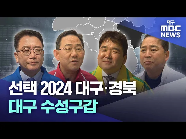 ◀앵커▶대구문화방송은 제22대 국회의원 선거를 앞두고 대구·경북 격전지를 대상으로 후보들의 공약과 정견을 알아보는 코너를 마련했습니다.첫 순서로 4명의 후보가 출마해 대구에서 가장 높은 경쟁률을 보이는 수성구갑으로 가보겠습니다.권윤수 기자입니다.◀기자▶대구의 정치 1번지로 불리는 수성구갑에는 여야, 무소속까...