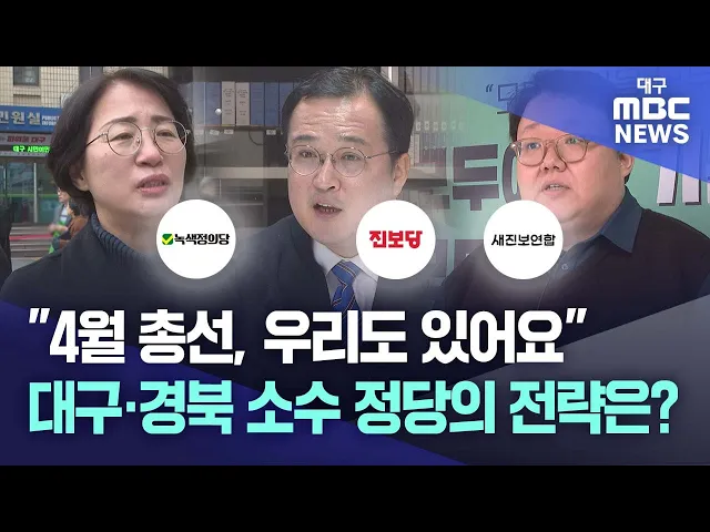 ◀앵커▶국회의원 선거를 두 달가량 앞두고 다양한 연합 정당과 군소 정당들이 나타나고 있습니다.아직 확정하지 못한 선거제에 따라 선거전략도 달라질 텐데요. 거대 양당에서 떨어져 나가 제삼지대라 불리는 정당 말고도 원내 소수 정당들은 이름을 바꾸거나 연합하고 있습니다. 대구·경북의 소수 정당은 어떤 총선 전략을 ...