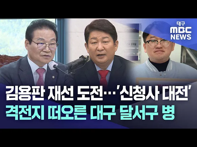 ◀앵커▶2024년 4월 총선에서 대구 달서구 병은 현역 국회의원과 전임 대구시장이 붙어 이른바 '신청사 대전'으로 주목받고 있습니다. 여기에다 진보당 예비 후보도 일찌감치 출마를 선언하고, 보수 측 전 국회의원도 도전장을 내밀 것으로 보여 치열한 각축이 예상됩니다. 보도에 권윤수 기자입니다. ◀기자▶대구 달서구 병 ...