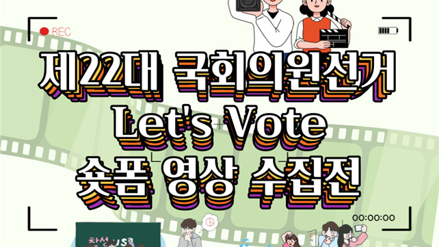 대구시 선거관리위원회는 오는 4월 총선에 유권자 관심을 끌기 위해 '22대 국회의원 선거 숏폼 영상 수집 전'을 개최합니다.영상은 투표 참여, 생활 속 선거, 선거송을 이용한 퍼포먼스 등 선거와 투표에 관한 다양한 이야기를 주제로 60초 이내로 제작하면 됩니다.영상 접수는 2월 1일부터 28일까지 하며, 남녀노소 누구나...