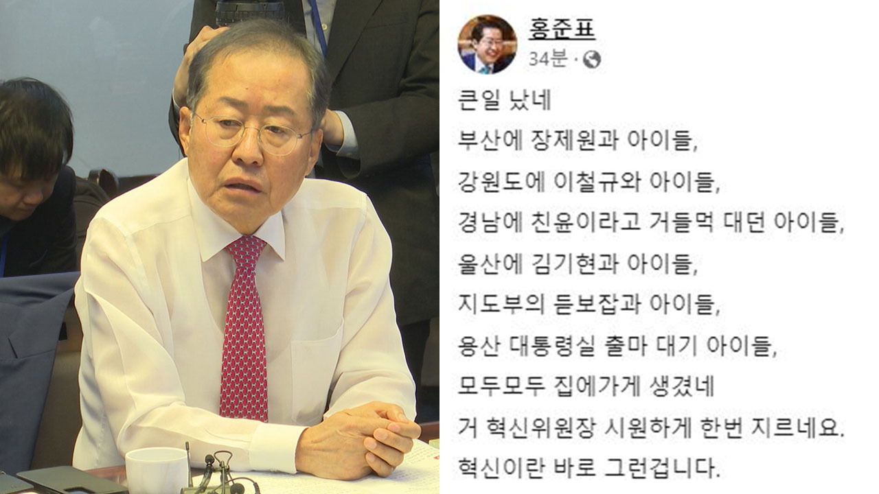 인요한 국민의힘 혁신위원장이 당 지도부와 중진, 친윤계 의원들에게 2024년 총선 불출마나 수도권 출마를 권유한 것과 관련해 홍준표 대구시장이 "혁신이란 바로 그런 것이다"라며 호평을 내놨습니다. 홍 시장은 11월 3일 자신의 SNS에 "혁신위원장이 시원하게 한 번 지르네요"라면서 총선 불출마나 수도권 출마를 해야 할...