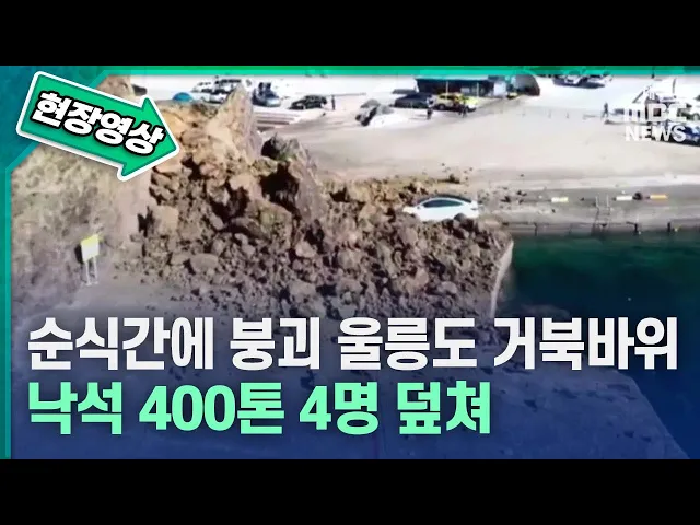 울릉도 거북바위 무너지면서 관광객 4명 덮쳐