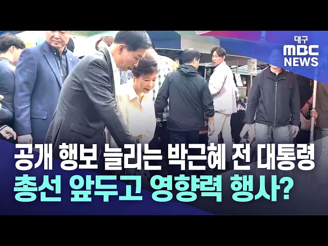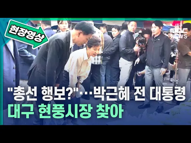 ◀앵커▶추석 연휴를 앞두고 박근혜 전 대통령이 집 근처의 한 전통시장을 찾았습니다. 총선을 6개월가량 앞두고 공개 행보가 늘면서 정치권 안팎의 관심이 쏠리고 있습니다. 보도에 권윤수 기자입니다. ◀기자▶박 전 대통령이 수행원들과 함께 차에서 내려 시장으로 걸어갑니다. 운동화를 신고 편안한 차림으로 시장 안 시민...
