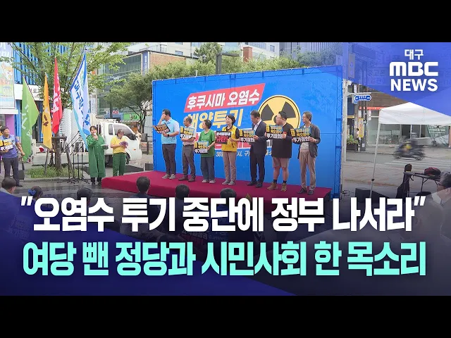 ◀앵커▶여당인 국민의힘을 제외한 구 지역 모든 야당이 8월 30일 대구 도심에 모여 후쿠시마 핵 오염수 투기 중단을 촉구하는 규탄 대회를 열었습니다. 시민 사회단체들도 오염수 방류를 멈추도록 정부가 나서라고 촉구했습니다.대통령실이 구내 식당 점심 메뉴로 국산 수산물을 내놓으며 국민들의 불안을 잠재우려 하지만 ...
