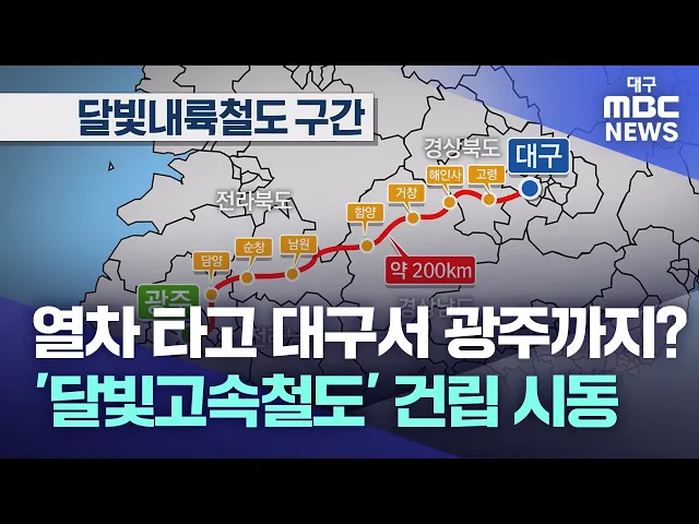 사진 제공 광주광역시대구 '달구벌'과 광주 '빛고을'의 앞 글자를 딴 달빛고속철도를 건설하기 위한 특별법이 국회에 발의됐습니다.달빛고속철도는 서대구역과 광주송정역을 잇는 198.8km 길이의 철도로 경북 고령과 경남 거창, 전북 남원, 전남 담양 등 10개 지자체를 지납니다. 건립 예산은 4조 5,000억 원 정도로 추산됩...