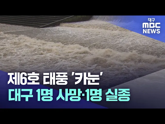 ◀앵커▶한반도를 관통한 제6호 태풍 '카눈' 소식 집중 전해드립니다. 이번 태풍으로 2023년 7월 대구로 편입된 군위군에서는 제방이 무너졌습니다.마을 전체가 물에 잠겨 119 구조대원들이 보트를 타고 고립된 주민 구조에 나섰습니다.대구에서는 군위에서 1명이 숨지고, 달성군에서 1명이 실종되는 등 인명 피해가 발생했는...