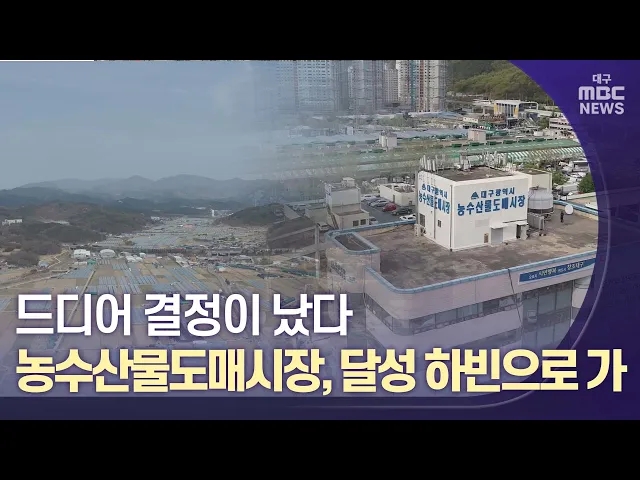 ◀앵커▶대구 농수산물도매시장이 대구 달성군으로 이전하는 것으로 결정됐습니다.대구시는 오는 2031년까지 달성군 하빈면 대평리에 도매시장을 새로 짓기로 했습니다.농수산물도매시장은 시설 현대화를 계획했다가 홍준표 시장 취임 이후 옮기는 것으로 변경됐는데요, 대구시는 이전지 선정에 따른 투기 방지 대책과 현재 ...