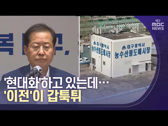 ◀앵커▶이미 시설 현대화사업에 들어간 매천동 농수산물도매시장을 대구시가 다른 곳으로 옮기기로 하고 연구 용역을 추진합니다. 홍준표 대구시장의 공약에 따라 4년 만에 현대화에서 이전으로 변경된 겁니다.10여 년 동안 갈등을 빚다 겨우 종지부를 찍나 했었는데, 이제 다시 원점으로 돌아간 셈인데요,도매시장 관련 용...